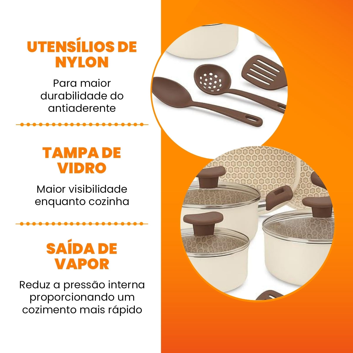 Conjunto Panelas Antiaderente 10 Peças Prime Alumínio - Ivory