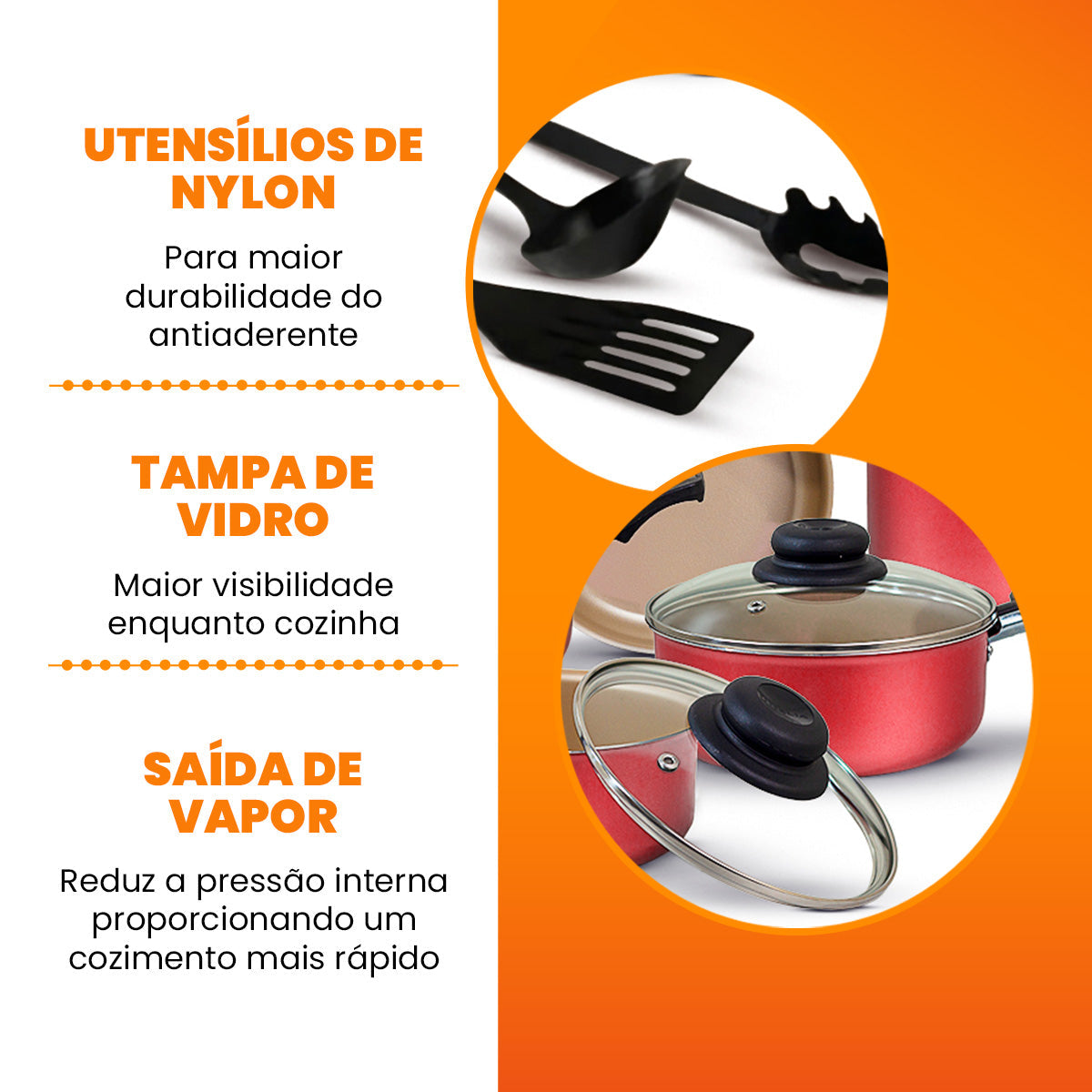 Jogo de Panelas Antiaderente 9 Peças - Cereja